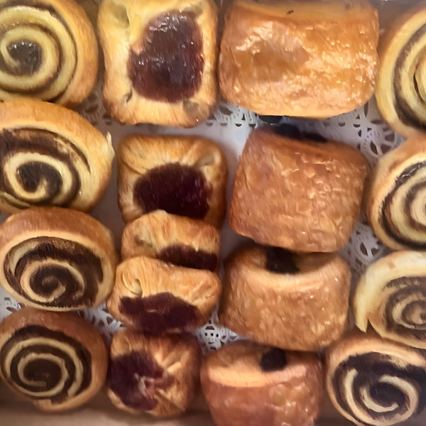 An elegant mix of croissants, danish, and sweet pastries—perfect with coffee or as a morning indulgence.